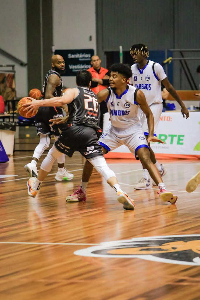 O primeiro quarto começou com o Pinheiros abrindo o placar e aproveitando um erro do Caxias para ampliar a vantagem. Aos 07:59, o Caxias empatou o jogo, e a partida seguiu equilibrada, com ambas as equipes pontuando. Aos 05:55, uma bola de três de Betinho colocou o Caxias na frente (11×8), e a equipe abriu sete pontos (17×10) com bom aproveitamento nos arremessos de longa distância. O Pinheiros empatou o jogo aos 03:29 e passou à frente aos 02:43 (18×20). Após uma bola de três de Fabrizzio, o Caxias voltou à liderança, mas no estouro do cronômetro, o Pinheiros acertou uma bola de três. Fim do primeiro quarto: 23×25.